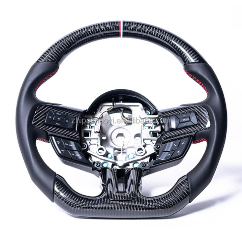 진짜 탄소 섬유 스티어링 휠 천공 가죽 포드 머스탱 GT Shelby GT350/GT350R 2018 2019 2020